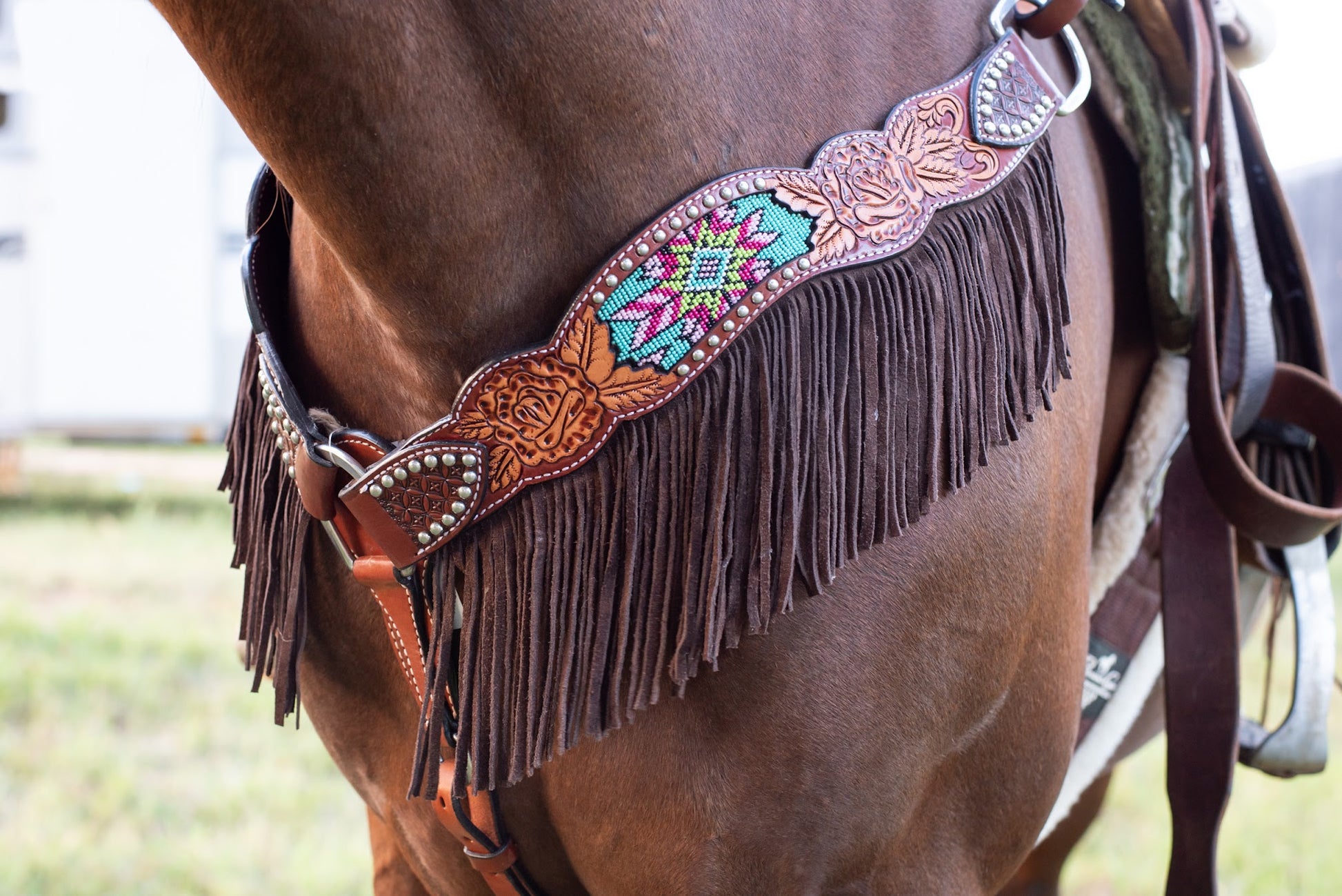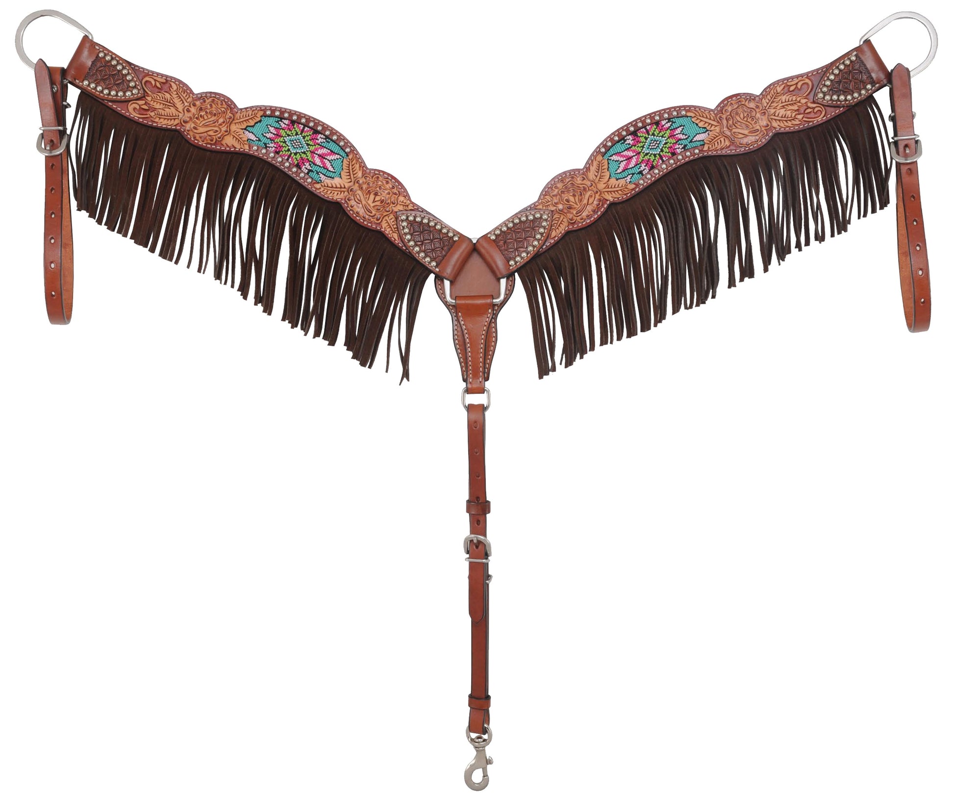 Rafter T Ranch Beaded Inlay Floral Tooling with Fringe Breast Collar